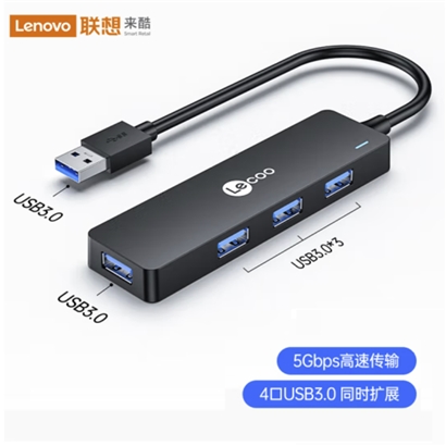 联想来酷 USB3.0分线器扩展坞高速4口HUB集线器笔记本电脑四合一多接口转换器转接头延长线LKP0601B 0.2m |