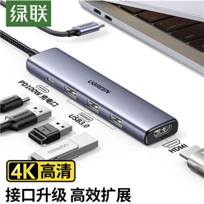 绿联(UGREEN)Type-C扩展坞雷电4K拓展坞USB分线器HDMI转接头电脑转换器CM511/15596 |