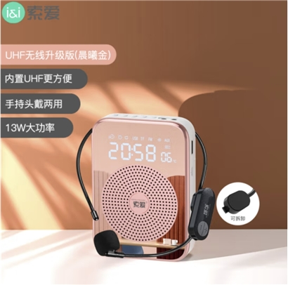索爱(soaiy)S350PRO UHF无线蓝牙13W大功率小蜜蜂扩音器喇叭教师导游麦克风音箱闹钟户外收音机播放器 玫瑰金 |