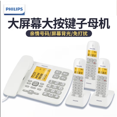 飞利浦(PHILIPS) DCTG152 电话机无绳电话子母机家用办公座机老人机大铃声大按键子母话机 一拖三 白色 |