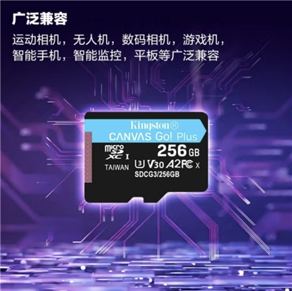 金士顿(Kingston)256GB TF(MicroSD)存储卡 行车记录仪 手机内存卡 U3 V30 A2 4K 读速170MB/s兼容手机平板无人机 |