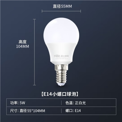 雷士 LED灯泡球泡 E14小螺口灯泡 5瓦正白光6500K-单只装 |