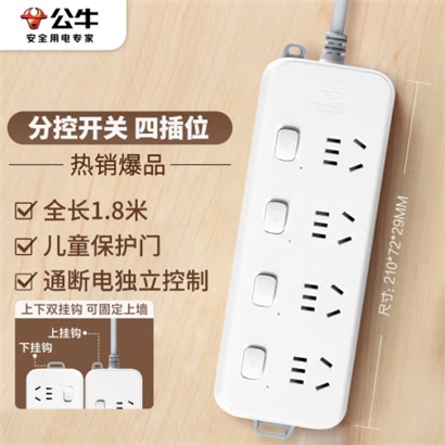 公牛(BULL)分控插座/插线板/插排/排插/接线板/拖线板 GN-B3043 4位分控全长1.8米 独立开关 |