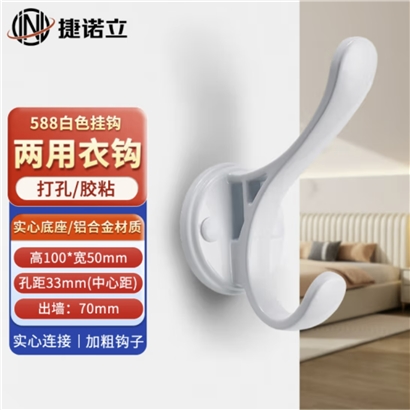 挂钩免打孔/打孔两用金属衣帽钩玄关挂衣钩N87494 588白色 |