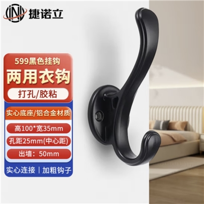 挂钩免打孔衣柜衣钩壁挂金属衣帽钩玄关挂衣钩N87498 599黑色 |