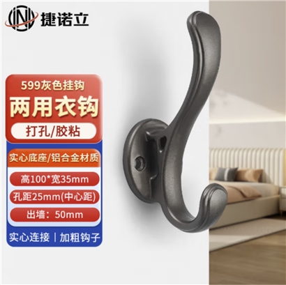 挂钩免打孔/打孔两用金属衣帽钩玄关挂衣钩 N87499 599灰色 |
