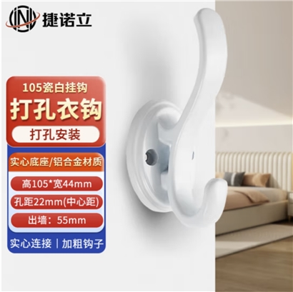 挂钩免打孔衣柜衣钩壁挂金属衣帽钩玄关挂衣钩 N87502 105瓷白 |