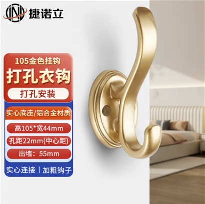 挂钩免打孔衣柜衣钩壁挂金属衣帽钩玄关挂衣钩N87504 105金色 |