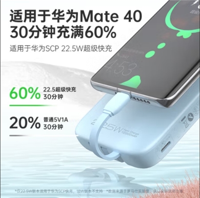 罗马仕充电宝10000毫安时自带三线22.5W超级快充 超薄小巧便携 适用于苹果14/13华为小米手机 黑色 |