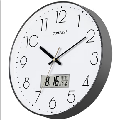 康巴丝(Compas)挂钟客厅时钟钟表挂墙自动对时电波钟 C6219AY钢琴黑 35cm |
