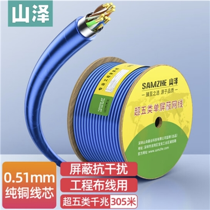 山泽 超五类屏蔽网线CAT5e类 纯铜0.51 抗干扰 透明蓝305米 FTP-305 |