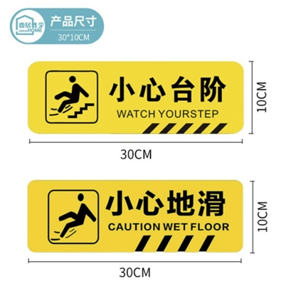 小心地滑地贴安全警示标识消防指示提示自粘地贴30*10cm5张装 |