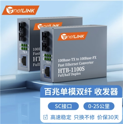 netLINK HTB-1100S-25KM 百兆单模双纤光纤收发器 光电转换器 SC接口 一对 0-25KM |