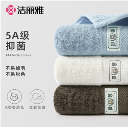 洁丽雅毛巾 新疆棉毛巾100%纯棉毛巾 抗菌吸水柔软洗脸毛巾3条装 72*34 |