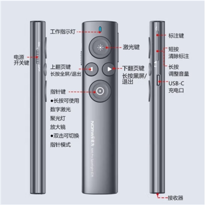 诺为激光笔飞鼠 自带32G优盘 绿光 N95s Pro PPT翻页笔教师用LED液晶屏放大凸显 物理数字双激光 |