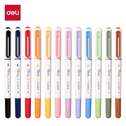得力 柔绘笔新国色手账笔 小楷软头马克笔 多色秀丽笔勾线笔SU105-12支 |