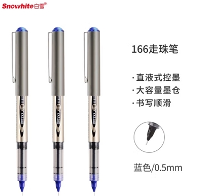 白雪(snowhite)PVN-166直液式走珠笔学生用中性笔全针管型商务办公签字笔考试专用笔巨能写0.5mm蓝色12支/盒 |