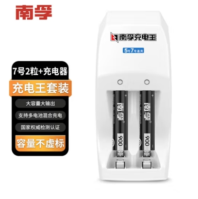 南孚7号充电电池2粒 镍氢耐用型900mAh 附充电器 适用于玩具车/血压计/血糖仪/鼠标等 AAA |