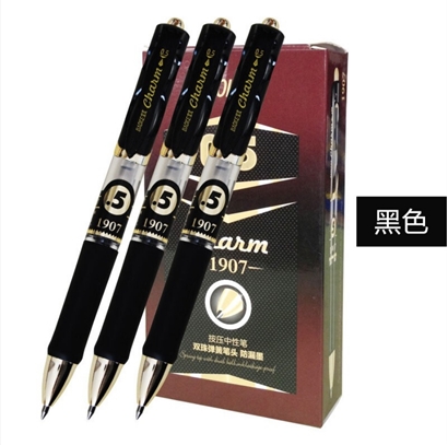 宝克(BAOKE) PC1907按压式中性笔 按动水笔0.5MM黑色红色蓝色签字笔 黑色笔12支/盒 |