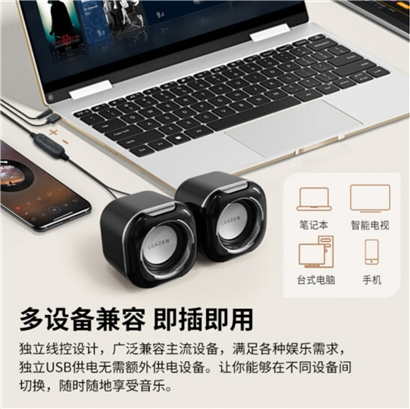 联想异能者2.0有线电脑音箱迷你小音响 USB高音质有源低音炮黑色 |
