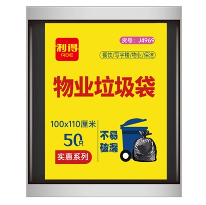 利得物业垃圾袋特大号加厚黑色平装100*110cm*50只单面1.5丝物业保洁 |