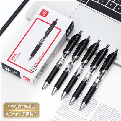 得力(deli)S01中性笔签字笔 0.5mm子弹头经典办公按动笔水笔 黑色 12支/盒 |