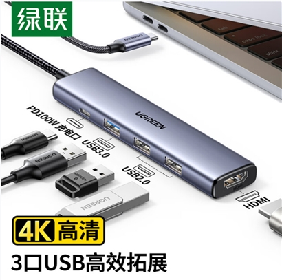 绿联Type-C扩展坞USB-C分线器雷电4拓展坞转HDMI转换器 |