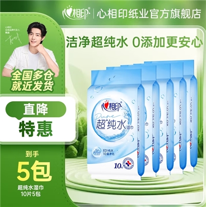 心相印超纯水湿巾单片独立包装便携式湿纸巾清洁小包 【分享装】5包 |