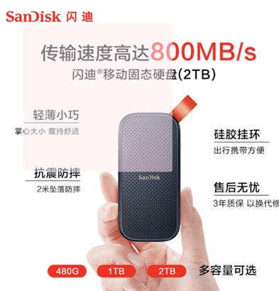 闪迪(SanDisk)2TB Type-c USB3.2移动E30高速 移动SSD 读速800MB/s 兼容手机笔记本电脑 |