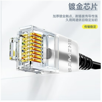 山泽超六类网线细线CAT6A类无氧铜 万兆成品连接线 家用电脑宽带兼容千兆网络跳线 20米黑色SZH-6200 |
