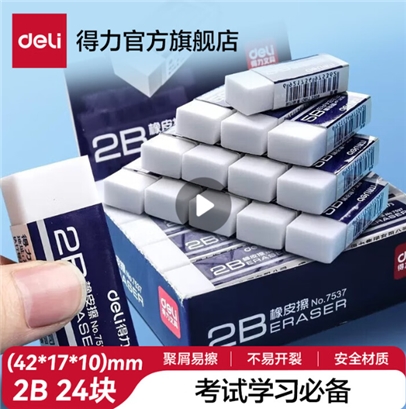 得力(deli)2B净白学生橡皮擦 学生考试美术绘图无邻苯橡皮学生用品居家学习用品开学推荐 【2B经典白】中号24块 7536A |