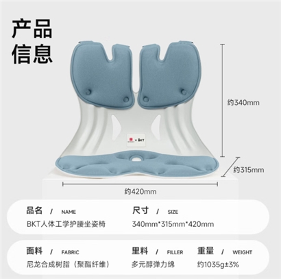 BKT护腰坐垫护腰久坐神器人体工学腰靠垫办公室护腰坐姿椅节日礼物