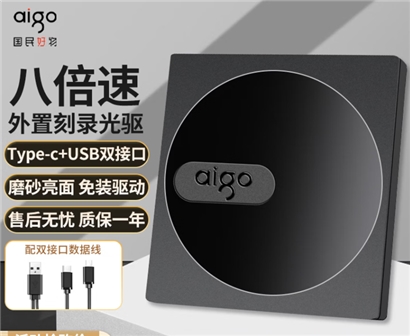 爱国者(aigo)8倍速 USB外置光驱 DVD外置刻录机 移动光驱 外接光驱笔记本电脑便携光驱外置读刻一体黑色G100 |